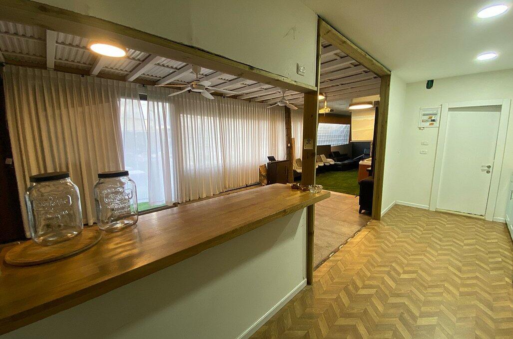 יש בר עם מקרר ומקפיא והמון מקום אחסון