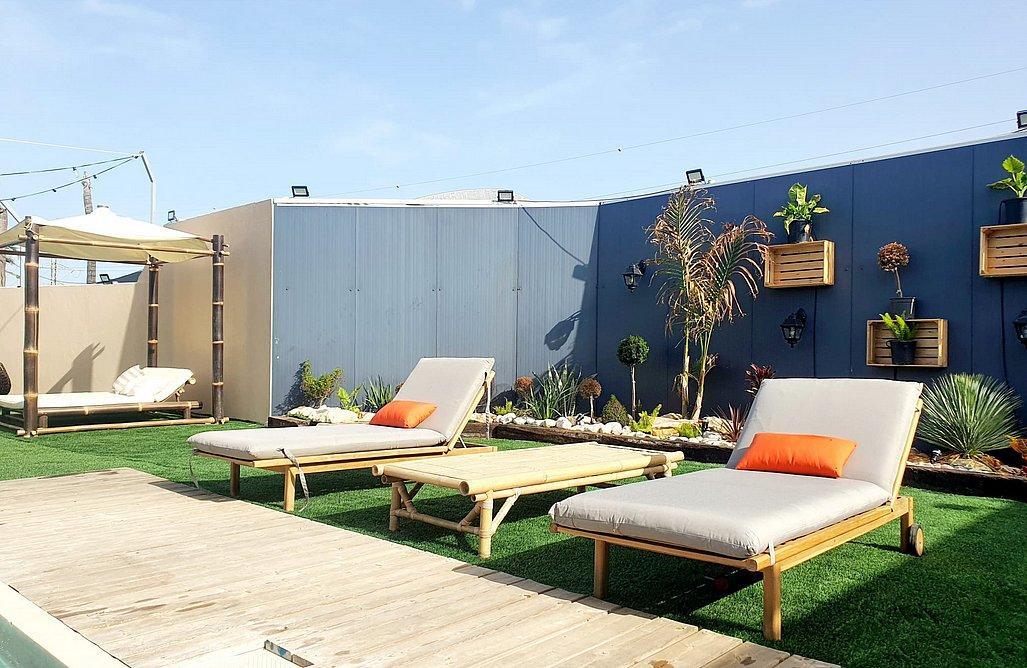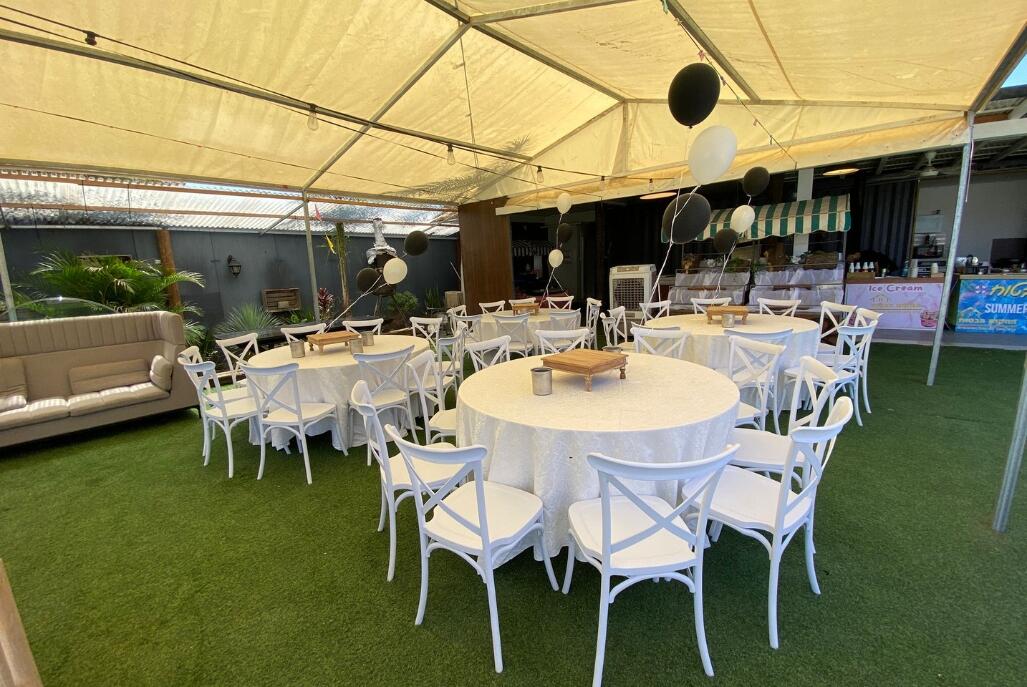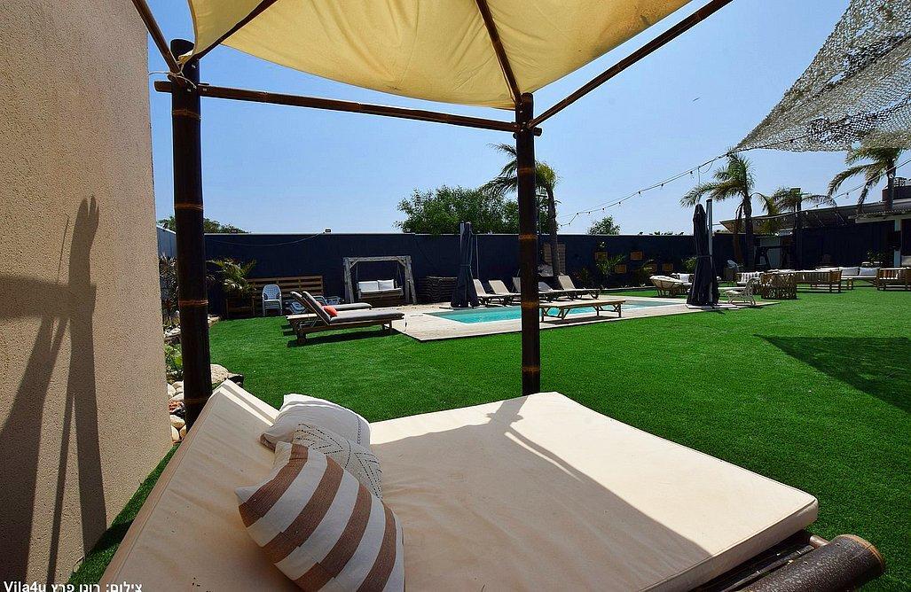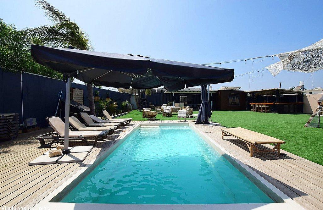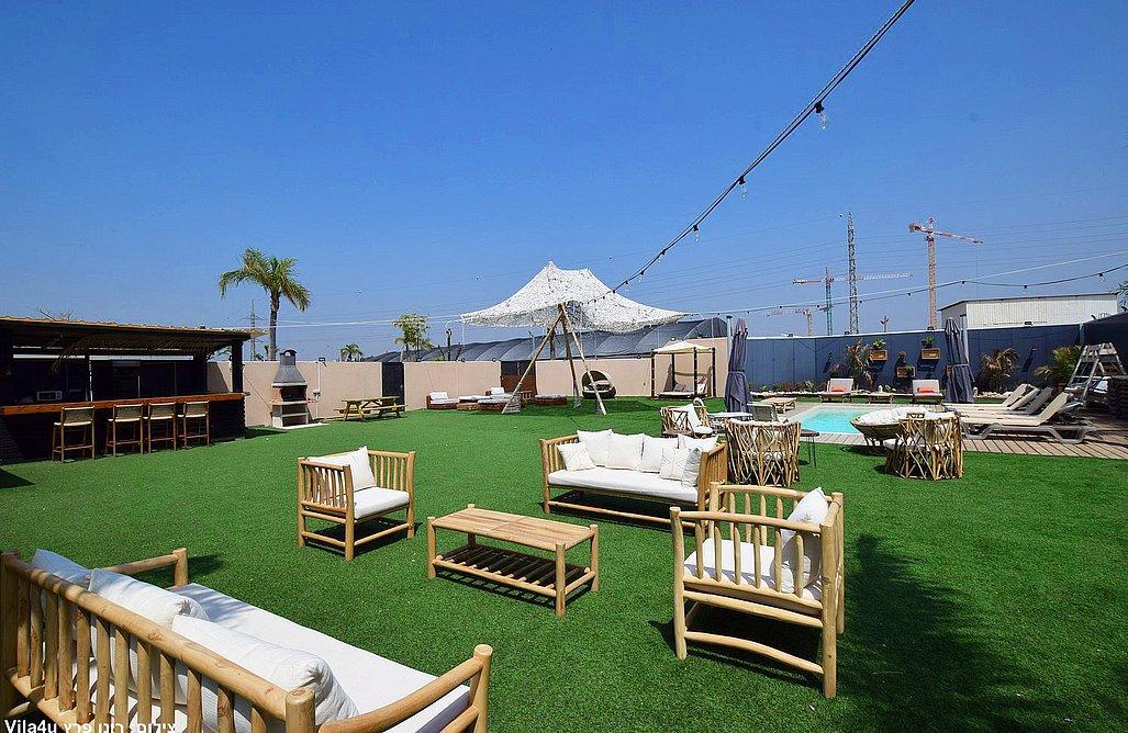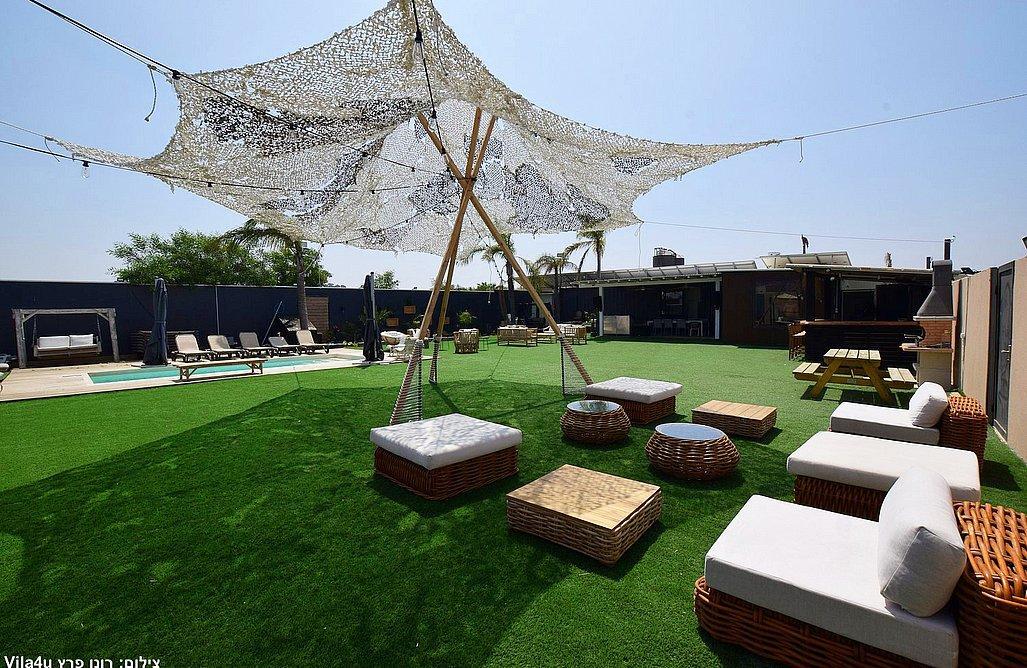 המתחם מתפרס על מרחבים של מדשאות הכוללים פינות ישיבה, עמדת מנגל מקצועית, בר עם מטבח, בריכת שחייה צלולה ועוד. המתחם כולל בנוסף גם מערכות הגברה ותאורה לאווירה.