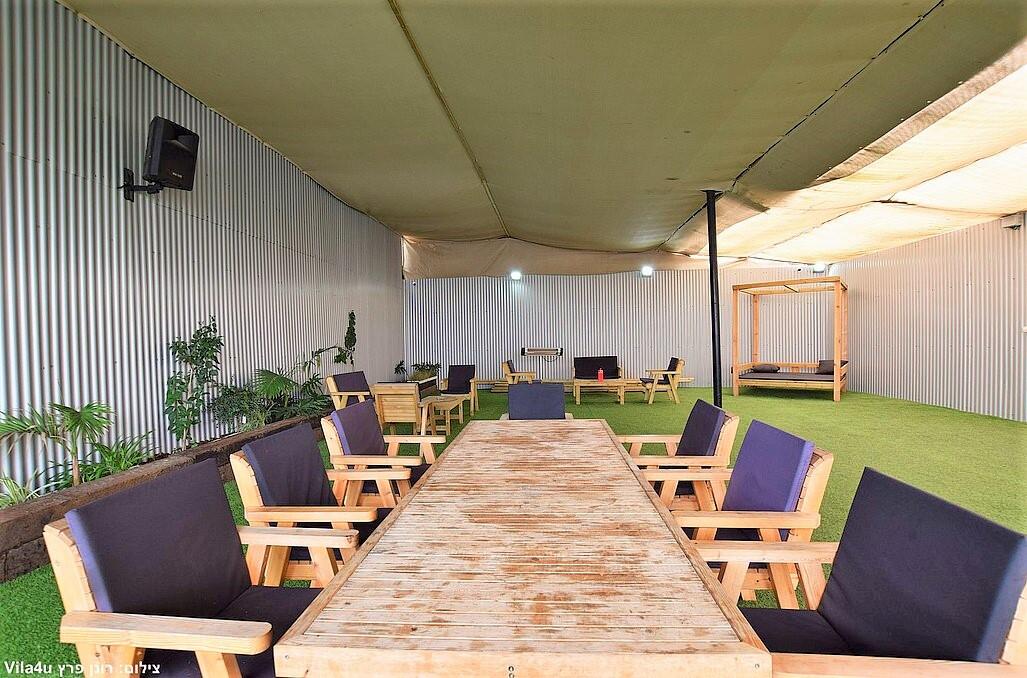 המוזיקה יכולה להיות רק בתוך המתחם במערכת הקיימת, אין להכניס מערכת שמע - אורח שיכניס מערכת שמע למתחם ייקנס ב1500 ש"ח!!! המתחם נמצא בשכונת מגורים אנא מכם לשמור על השקט!!!