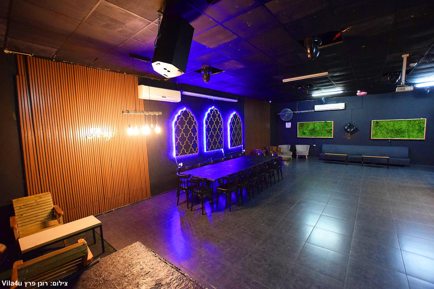 המקום כולל עמדת דיג'יי, הגברה ותאורה עם 4 סוגים, רחבת ריקודים, בר שתייה עם כסאות, קריוקי, מקרן ועוד המון.