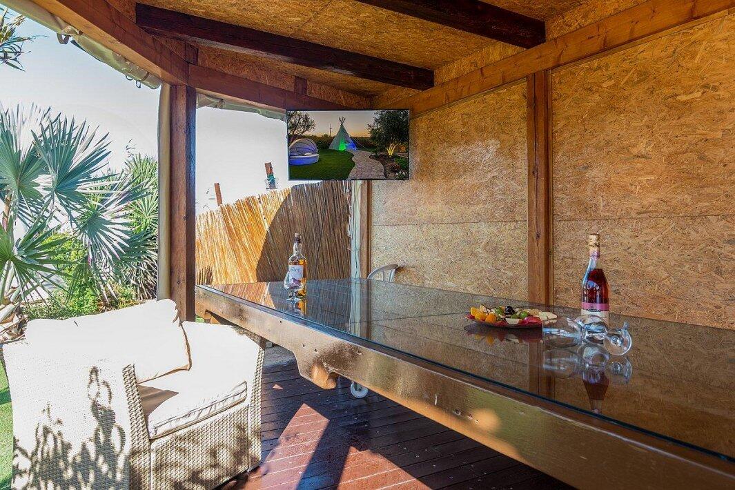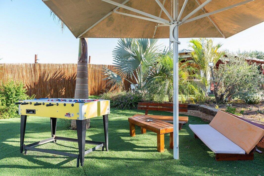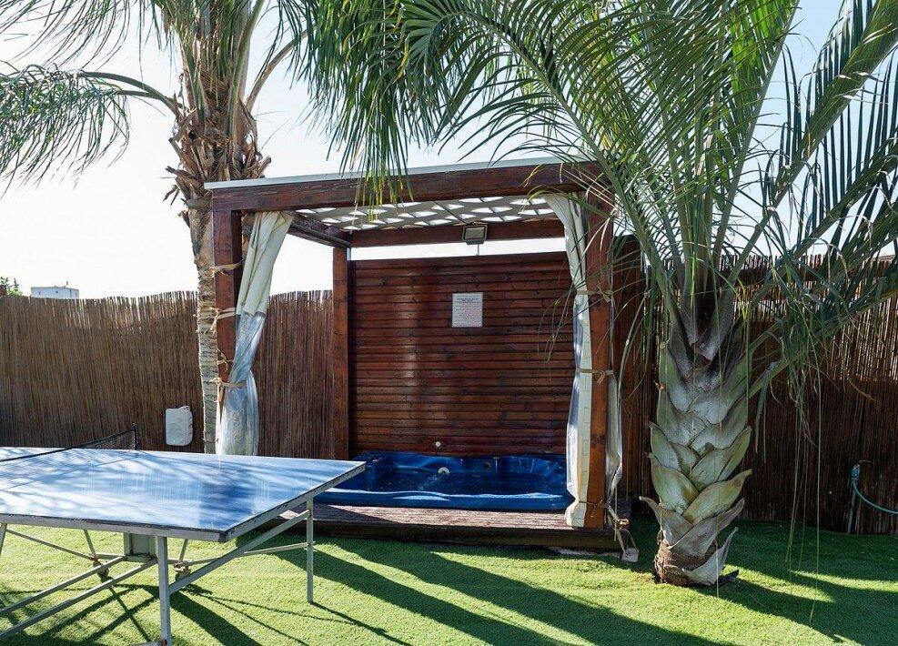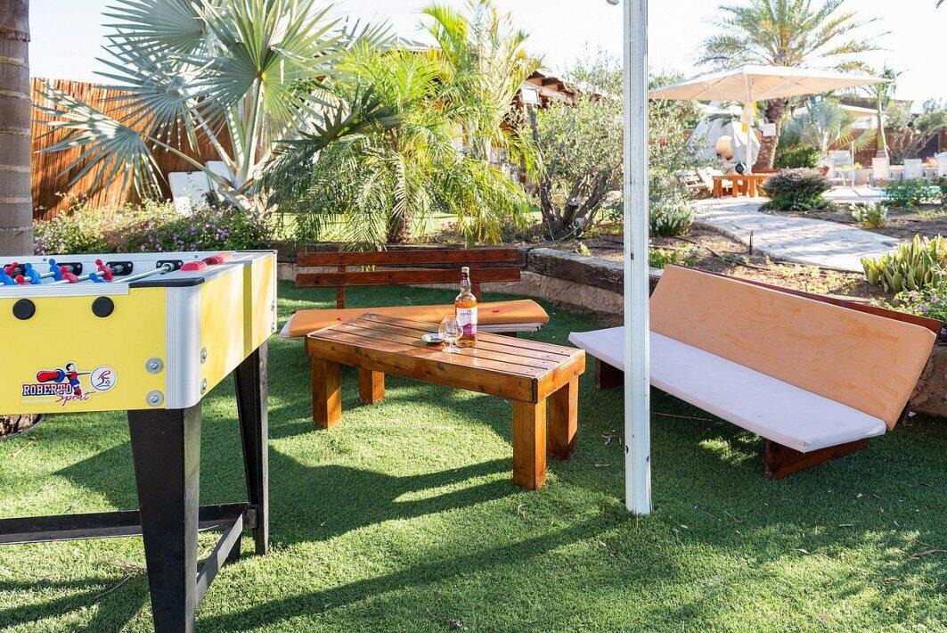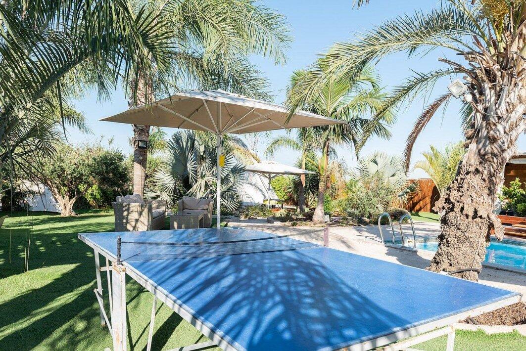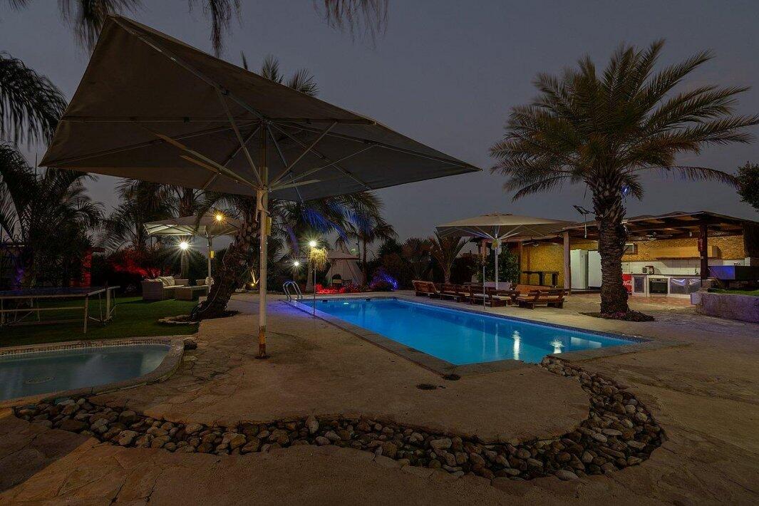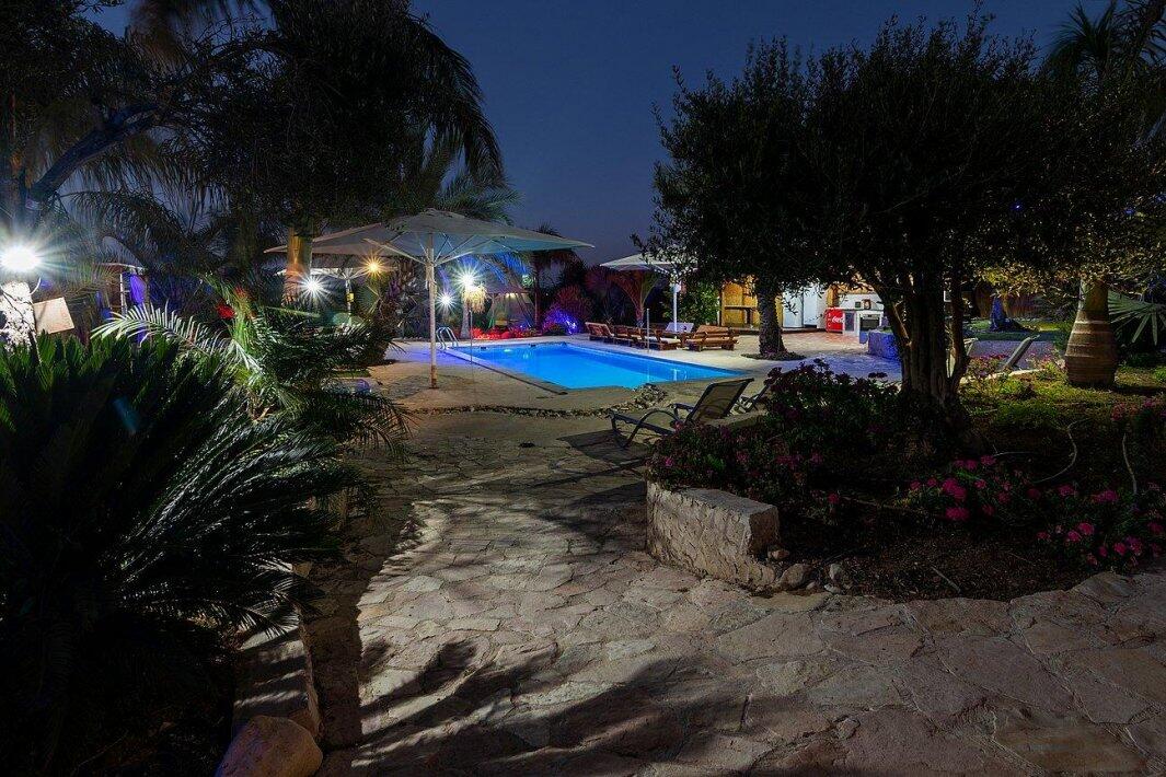 במתחם ניתן למצוא משטחי דשא ירוקים, בריכת שחייה גדולה ותלולה, ג'קוזי ספא מפנק, פינת מנגל, מטבח חיצוני, שולחן פינג פונג, מערכות שמע מתקדמות (אין להכניס מערכות הגברה למתחמים, מערכות השמע מסופקות ע"י המקום), ועוד...