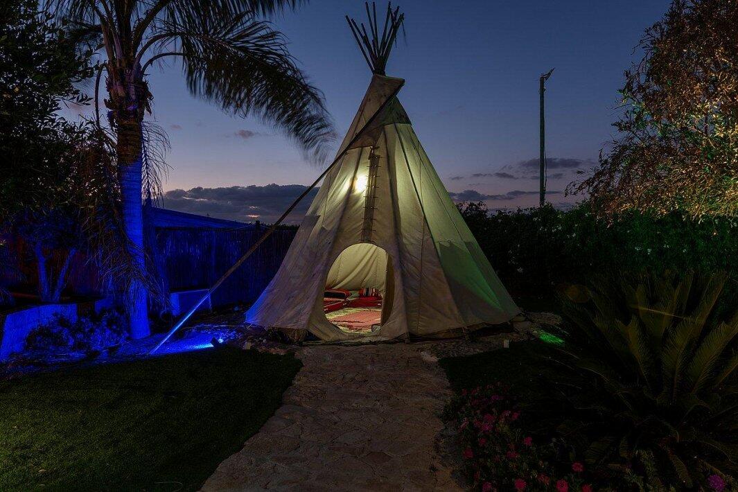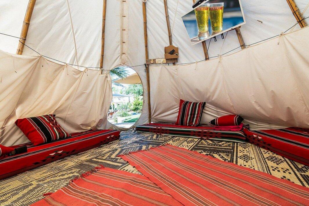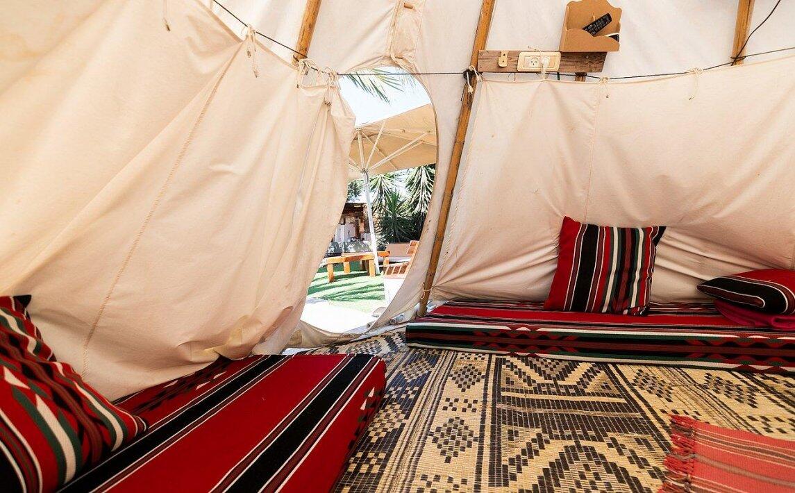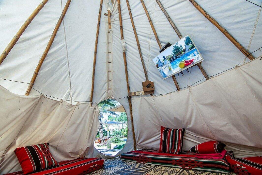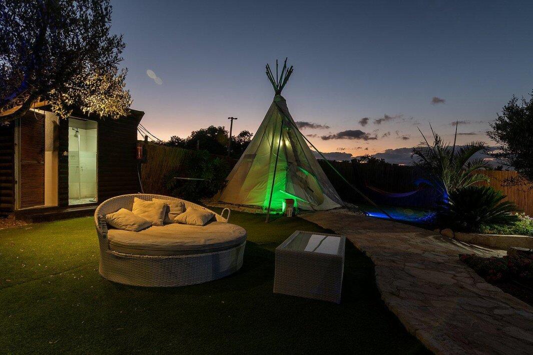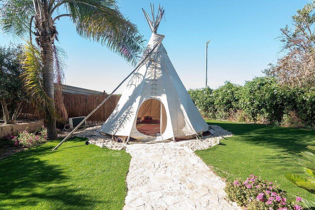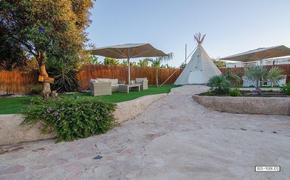 אירוח במתחם הכולל 4 אוהלי טיפים ממוזגים מתחם מגודר הכולל 4 שירותים ו2 מקלחות
